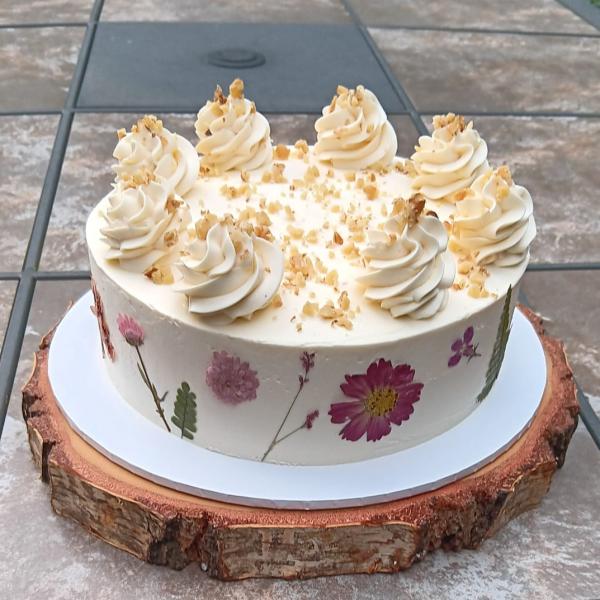 Potential allergens are listed for each cake but please note all cakes are made in a kitchen where there may be traces of wheat, soya, nuts or milk. Please discuss any concerns you have regarding potential allergens when placing your order.